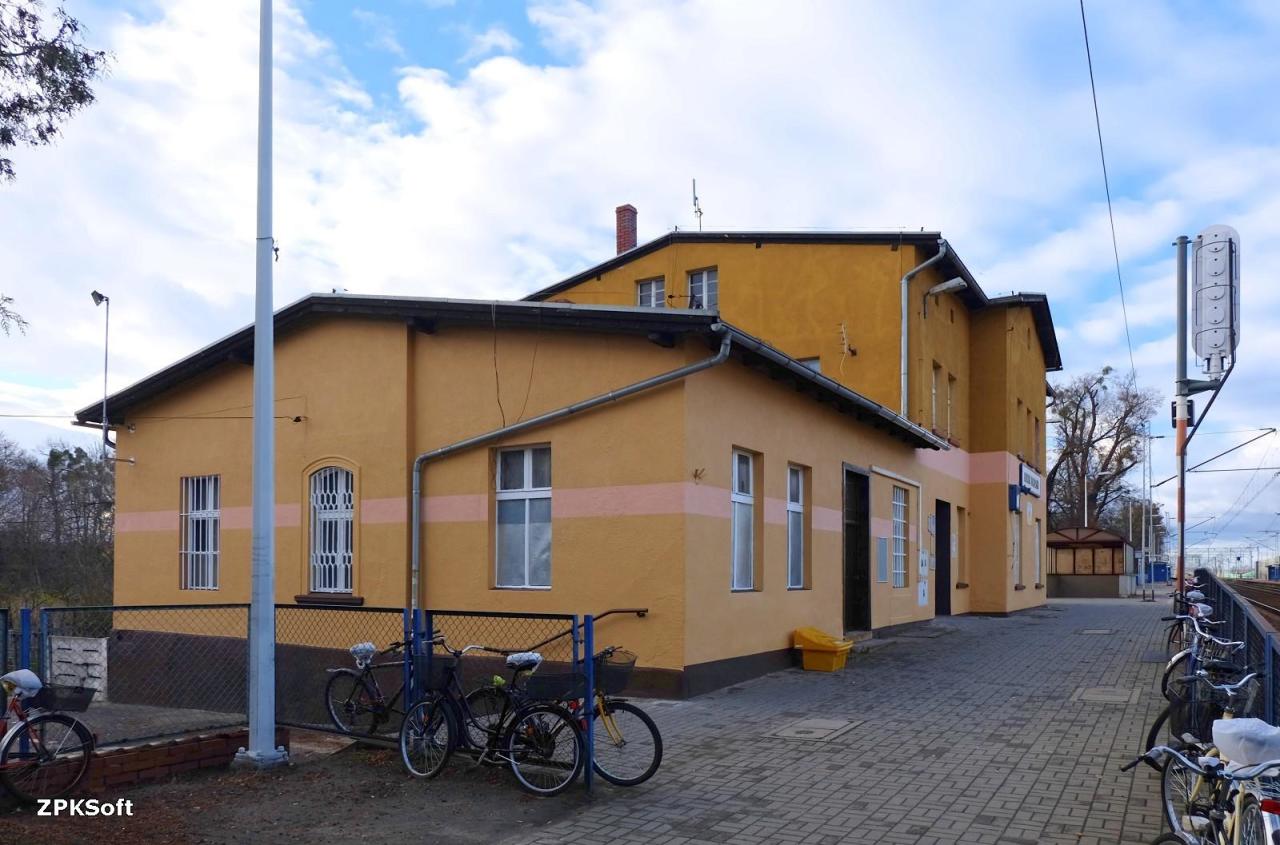 Budynek stacji widoczny od strony wyjścia do miasta.