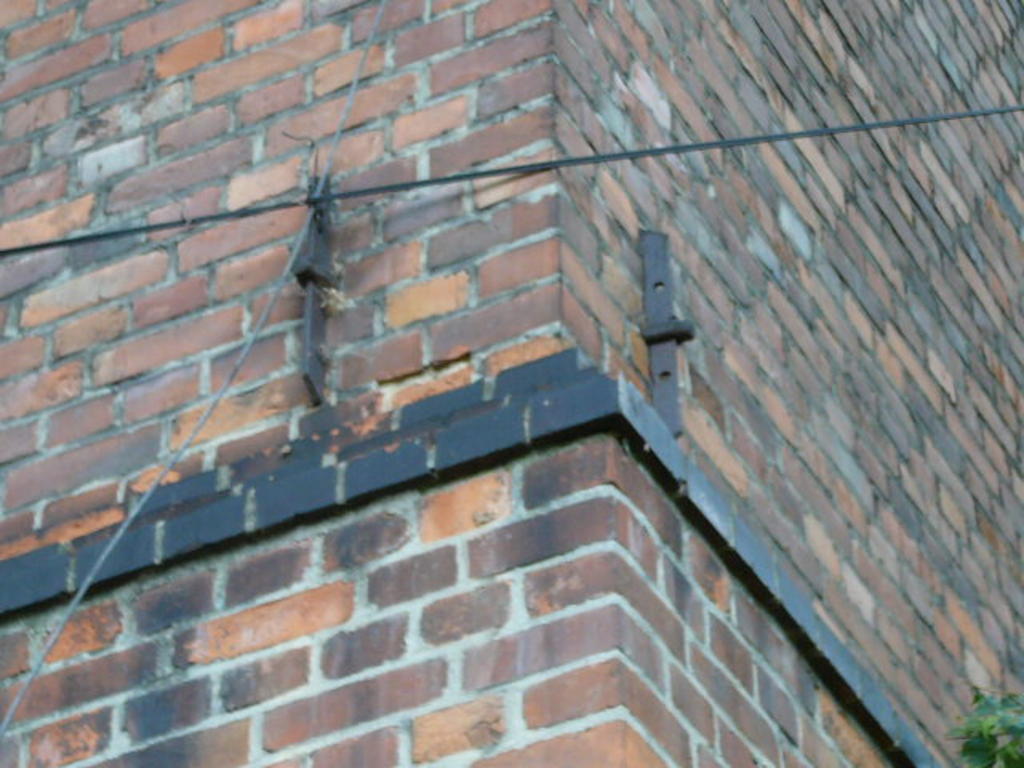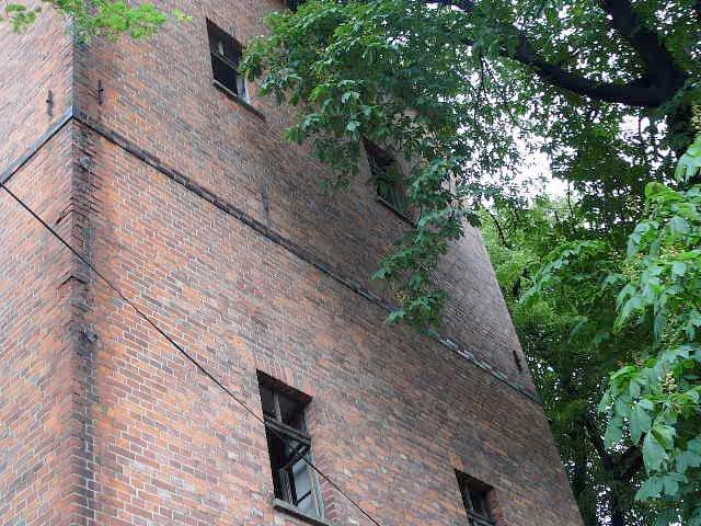 Lewin Brzeski. Wstawka pozioma z cegły klinkierowej i zabezpieczenie dźwigarów wieży wodnej.