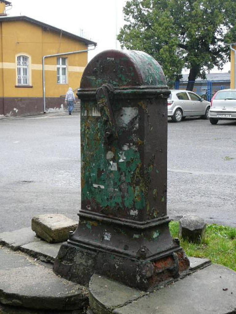 Lewin Brzeski. Sędziwa pompa przy budynku dworca.
