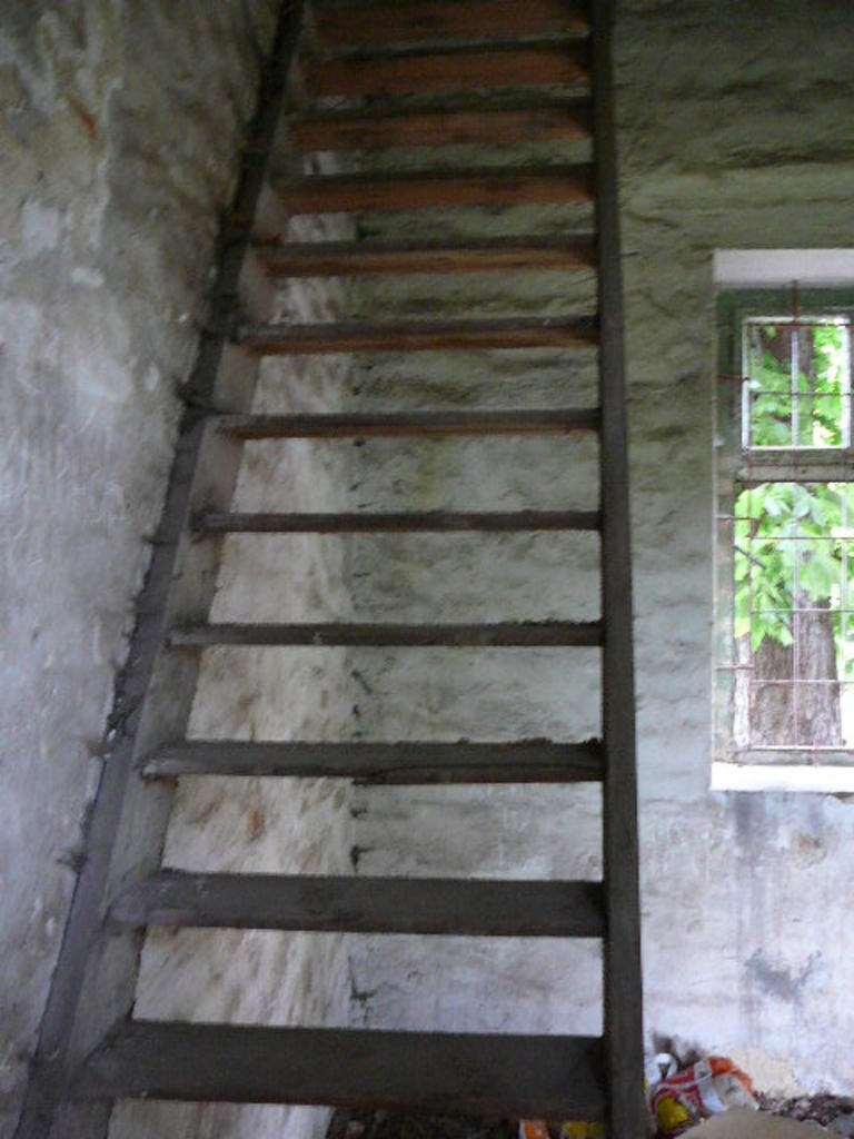 Lewin Brzeski. Wnętrze wieży wodnej z ocalałymi schodami.