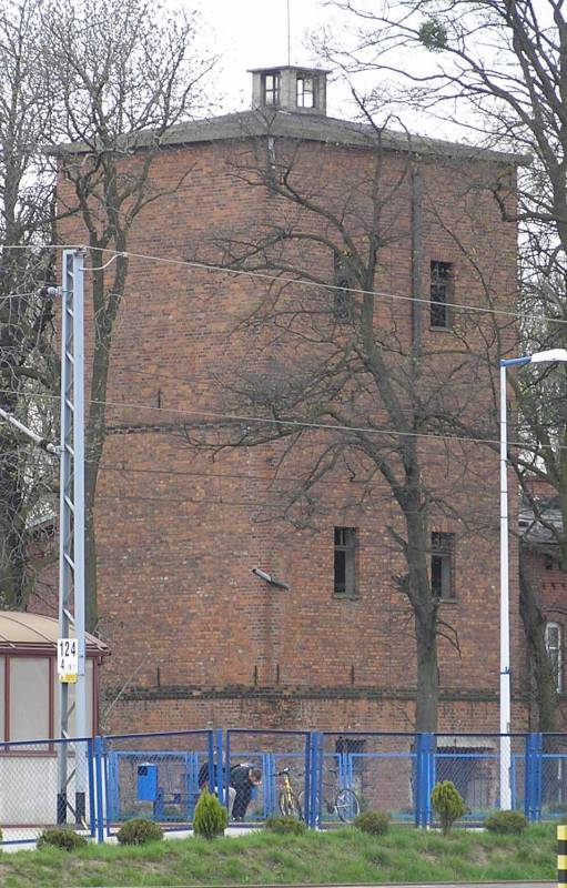 Lewin Brzeski. Wieża wodna, tory z lewej - niewidoczne.