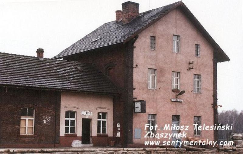 Budynek dworca i perony 1, 2. W tle cegielnia, obecnie nieistniejąca. Widok w kierunku południowo-wschodnim; w lewo Sieniawa Żarska/Żary i Łęknica/Bad Muskau.