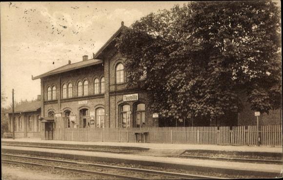 Duża stacja nazywała się Teuplitz (z oficjalnym dodatkiem Reichsbahnhof w latach 1932-39). Małą w początkach istnienia określano jako Teuplitz-Lokalbahnhof, ale jej urzędowa nazwa przed 1939 to prawdopodobnie Teuplitz MTSE (od Muskau-Teuplitz-Sommerfeld Eisenbahn.