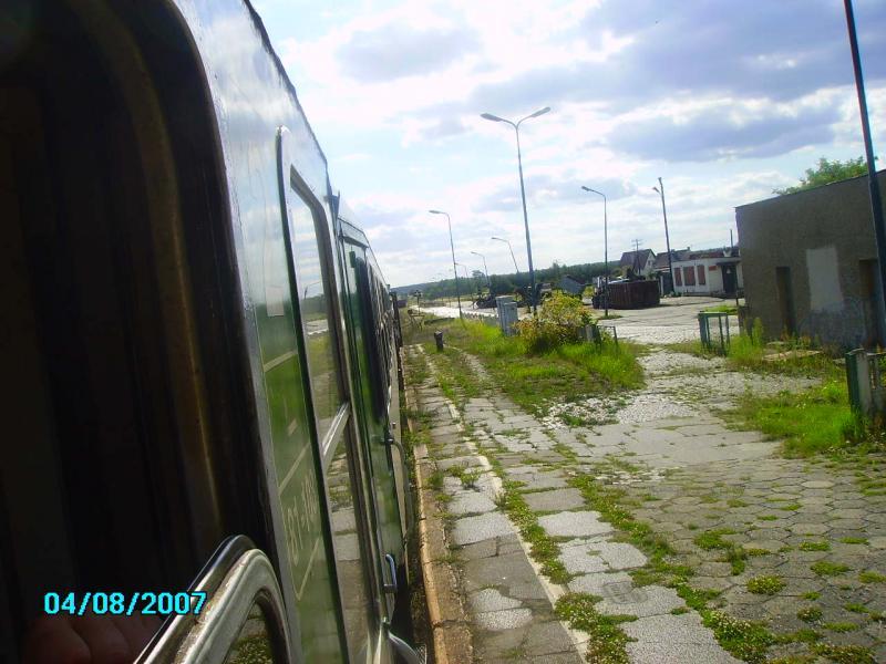 Pozostałości po drugim peronie. Z prawej, poza kadrem dworzec. Widok w kierunku Szydłowa/Nysy.