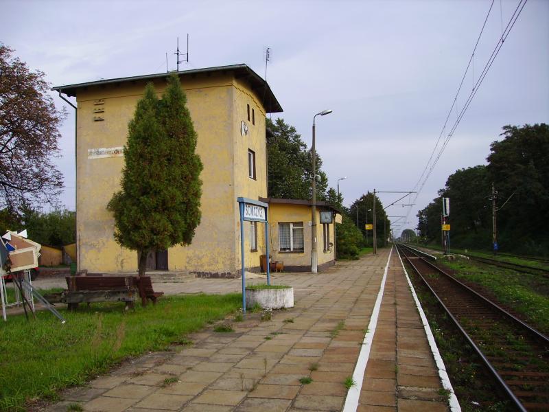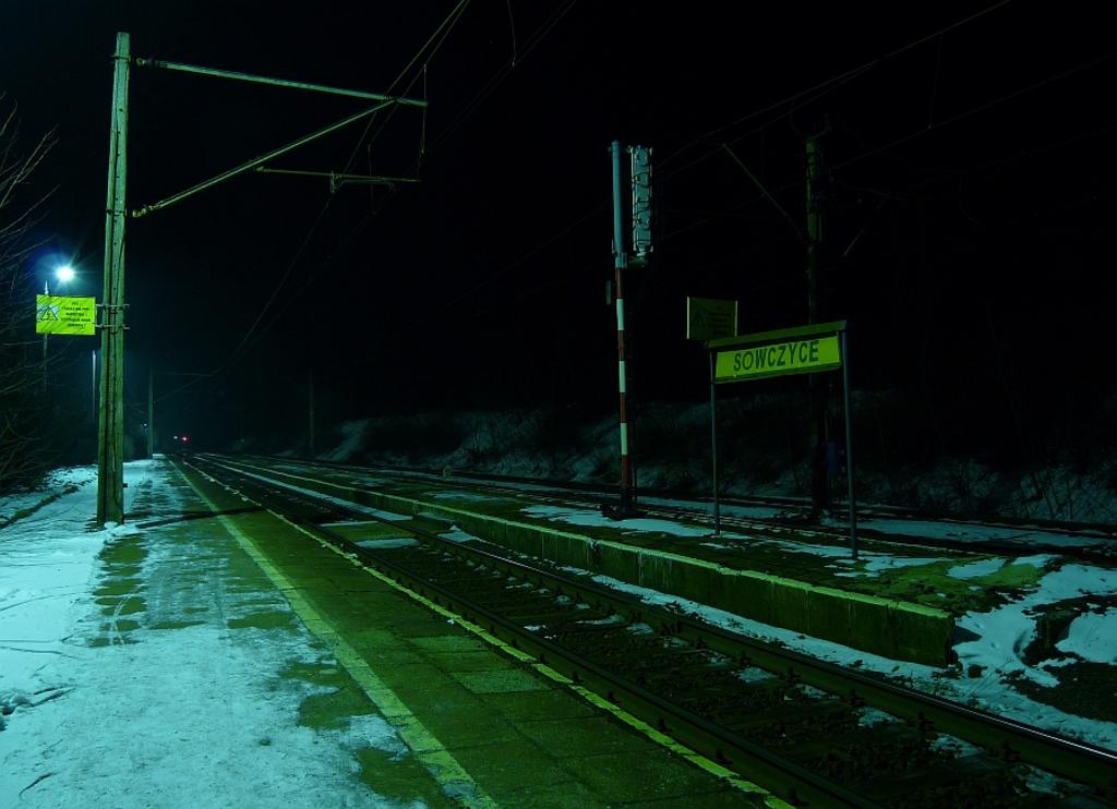 Sowczyce, perony. Widok w kierunku Lublińca. Budynek w tle, to albo nastawnia, albo SKP.