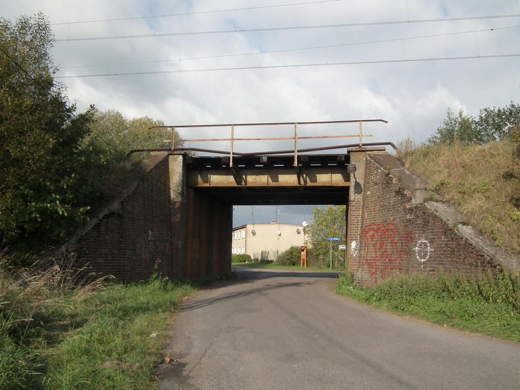 Wiadukt kolejowy nad ul. Długą. Widok w kierunku północno-wschodnim: w prawo perony, w lewo Olesno/Kluczbork.