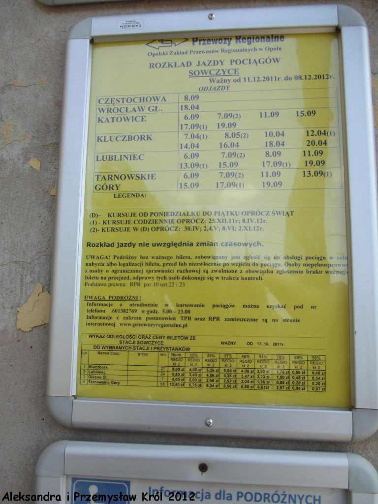 Aktualny na rok 2012 rozkład jazdy pociągów osobowych.