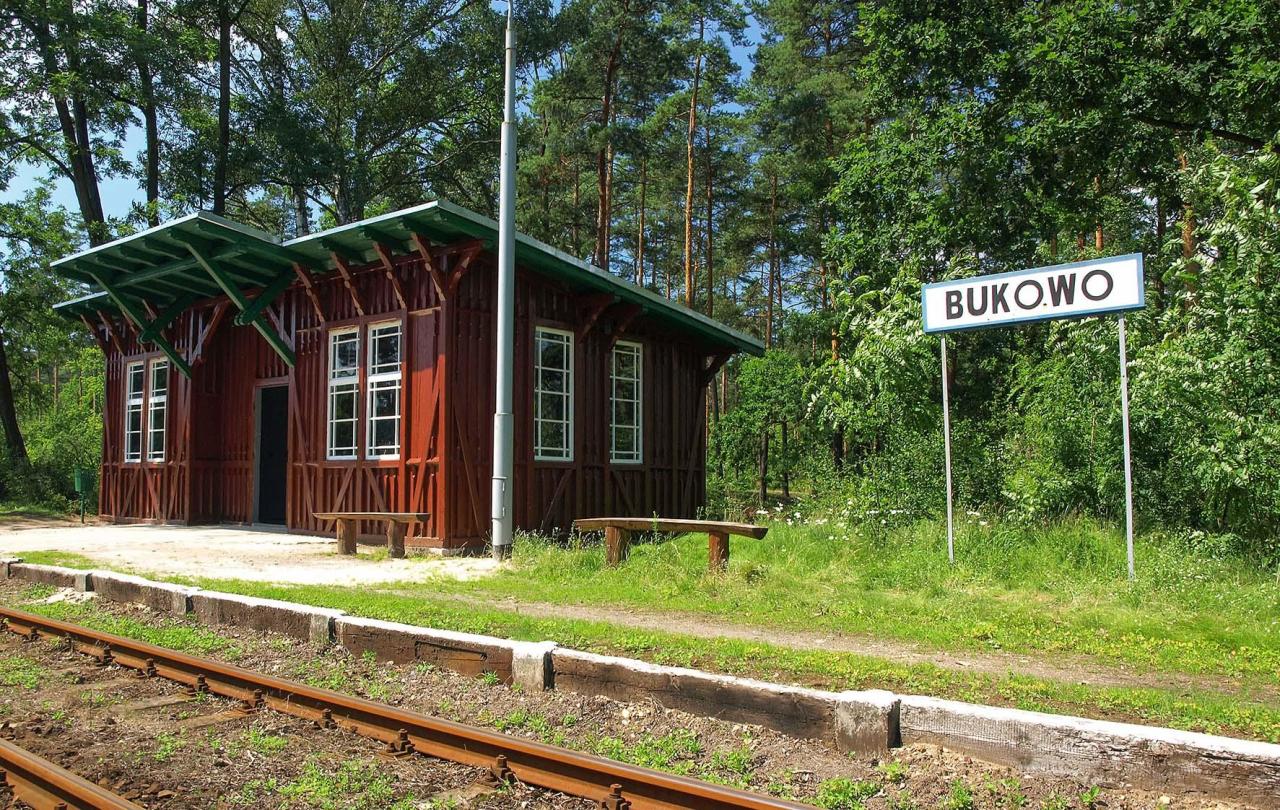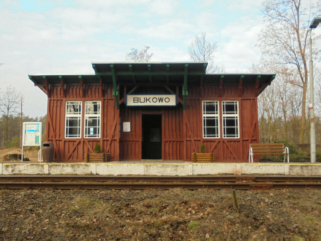 Zabytkowy odrestaurowany budynek stacji w Bukowie.