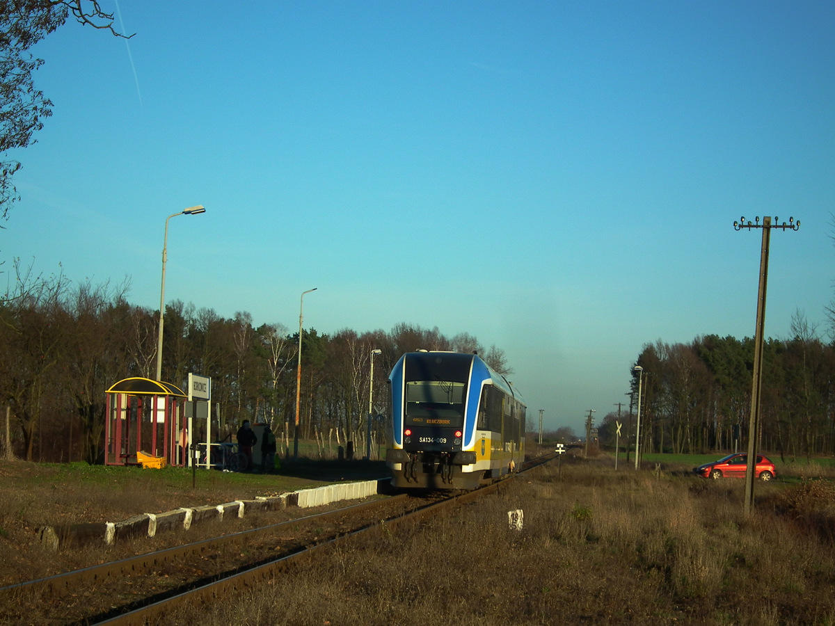 Szynobus do Kluczborka, rusza w kierunku stacji docelowej. W lewo Jełowa/Opole, w prawo Kluczbork.