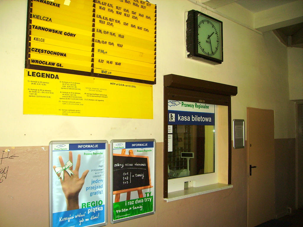 Okienko kasowe i rozkład jazdy.