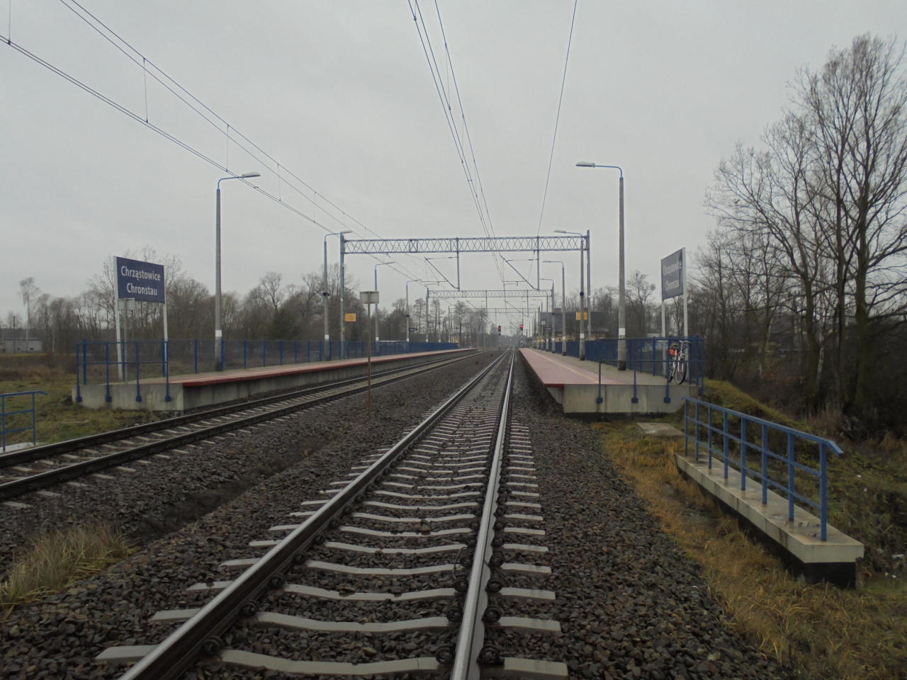 Dwujęzyczna tablica z nazwą stacji/mijanki - Chrząstowice - Chronstau. Warto wspomnieć, że gmina Chrząstowice to jedyna gmina w Polsce, która nawet na Kolei ma tablice dwujęzyczne. A szkoda, (że tylko jedyna)…