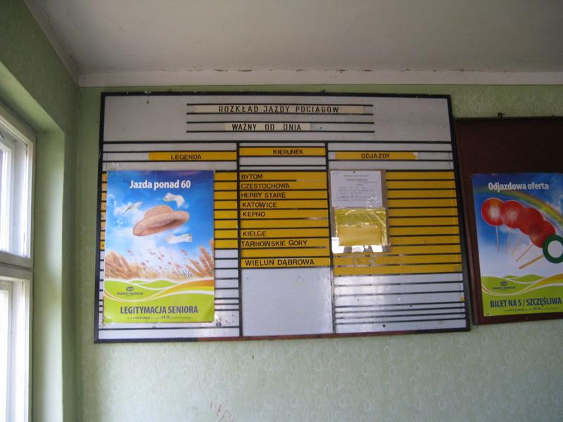 Jazdy. Tablica na rozkład jazdy w budynku stacji w Jaworznie. Niestety dziś już nieczynna.