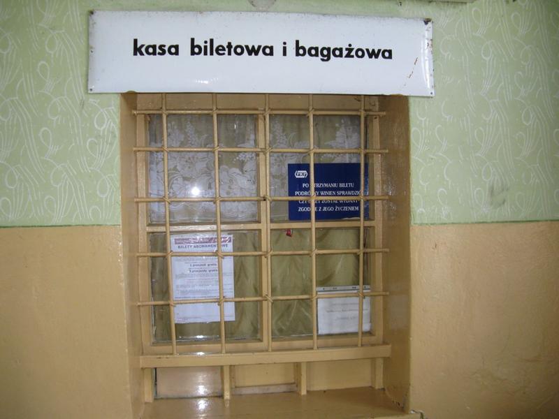 Kasa biletowa. Czynna z przerwami między pociągami kasa biletowa na stacji w Jaworznie.