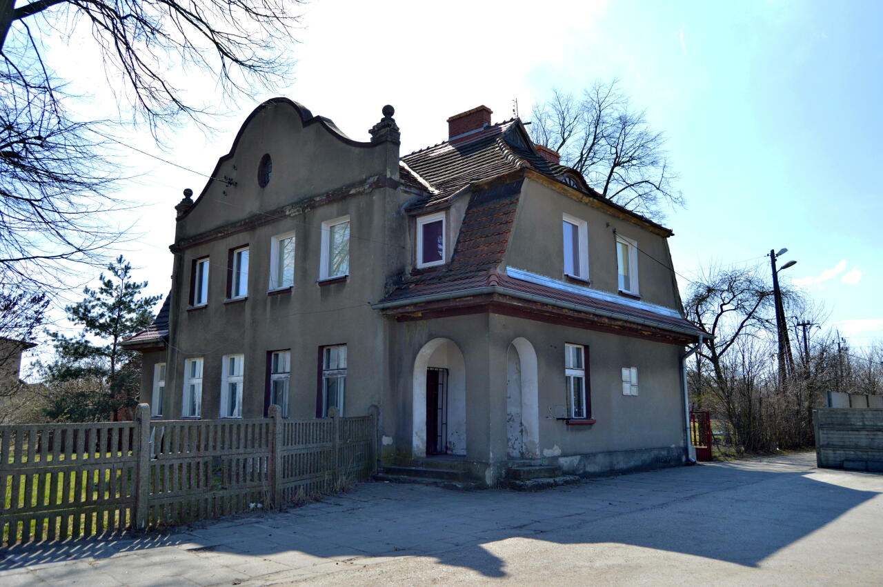 Widok budynku stacji kolejowej - Jaworzno k. Wielunia.