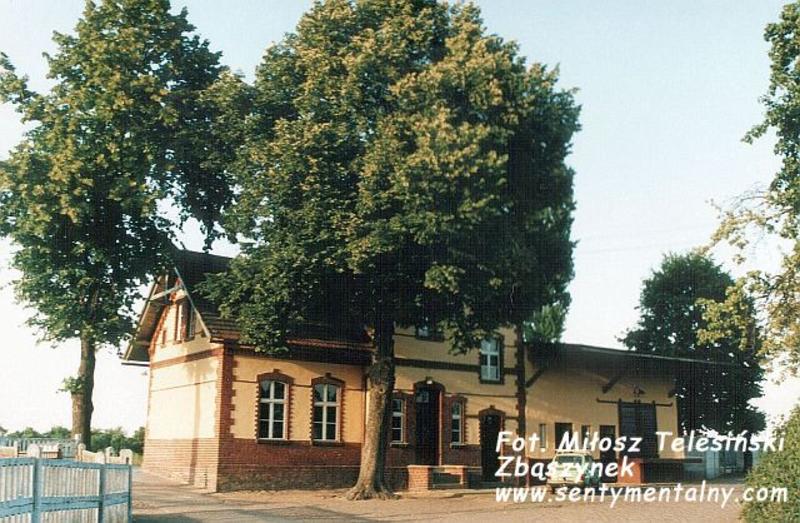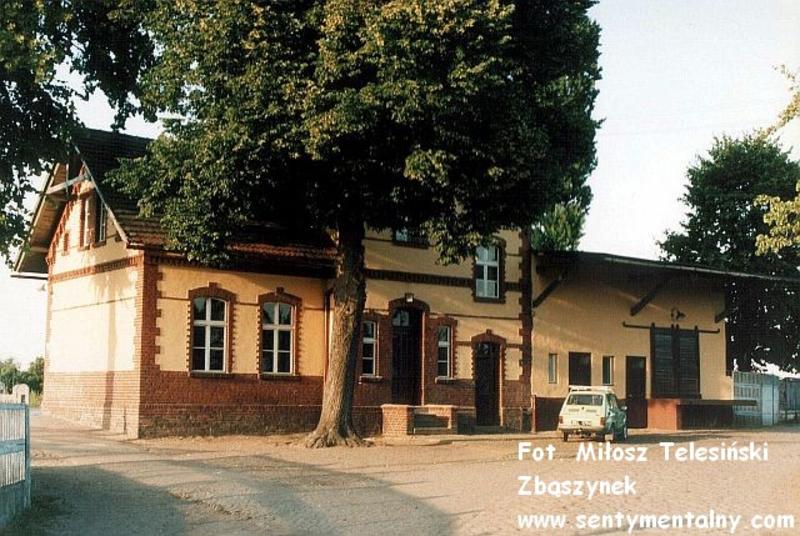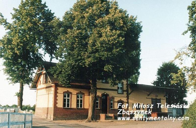 Budynek dworcowy od strony peronu. Po lewej magazyn. W lewo Wolsztyn, w prawo stacja Zbąszyń; 66,6 km.