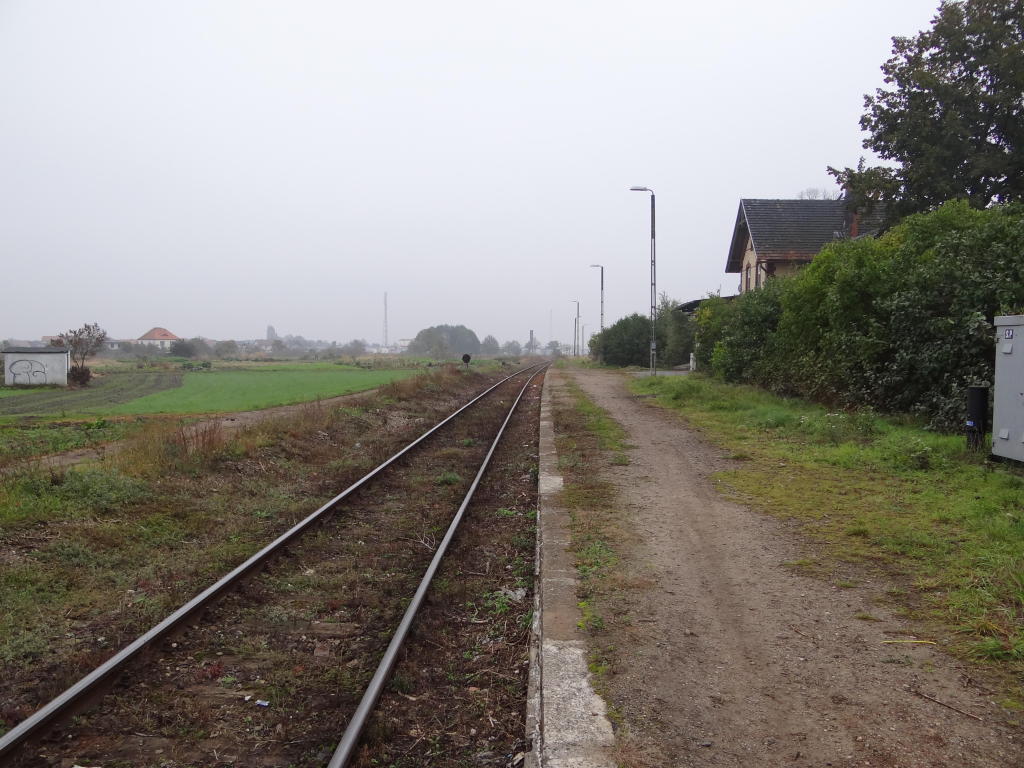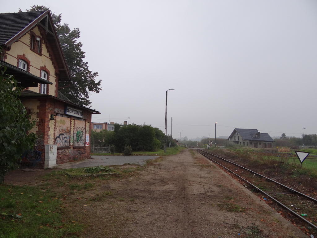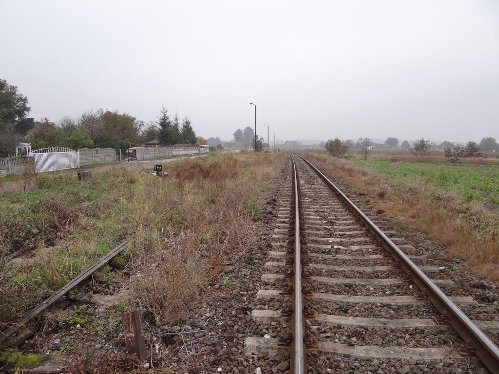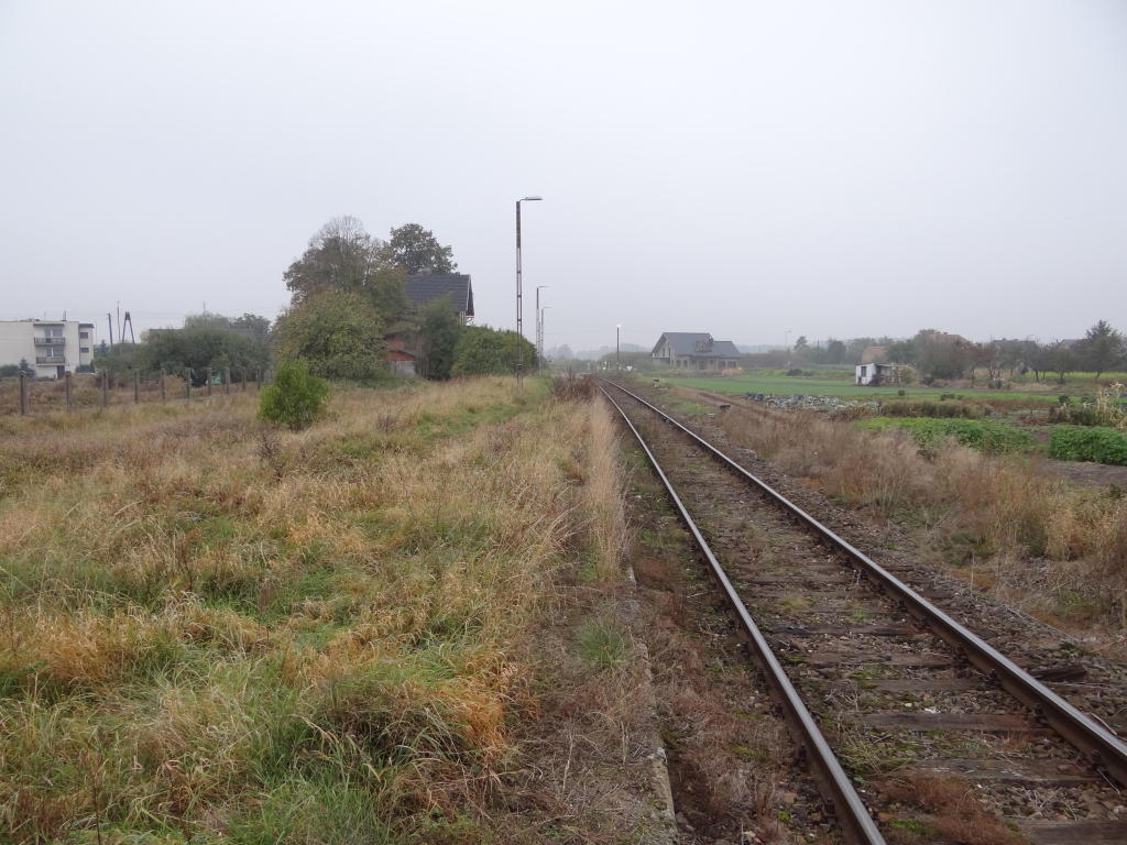 Po lewej bocznica. Widok w kierunku stacji Zbąszyń; 66,3 km.