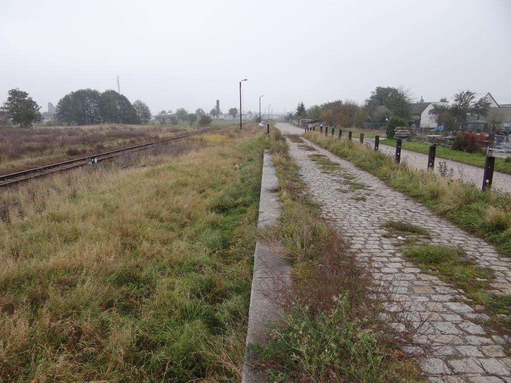 Peron. Bocznica. Po prawej rampa boczna o długości ok. 40 m. Widok w kierunku Wolsztyna; 66,5 km.