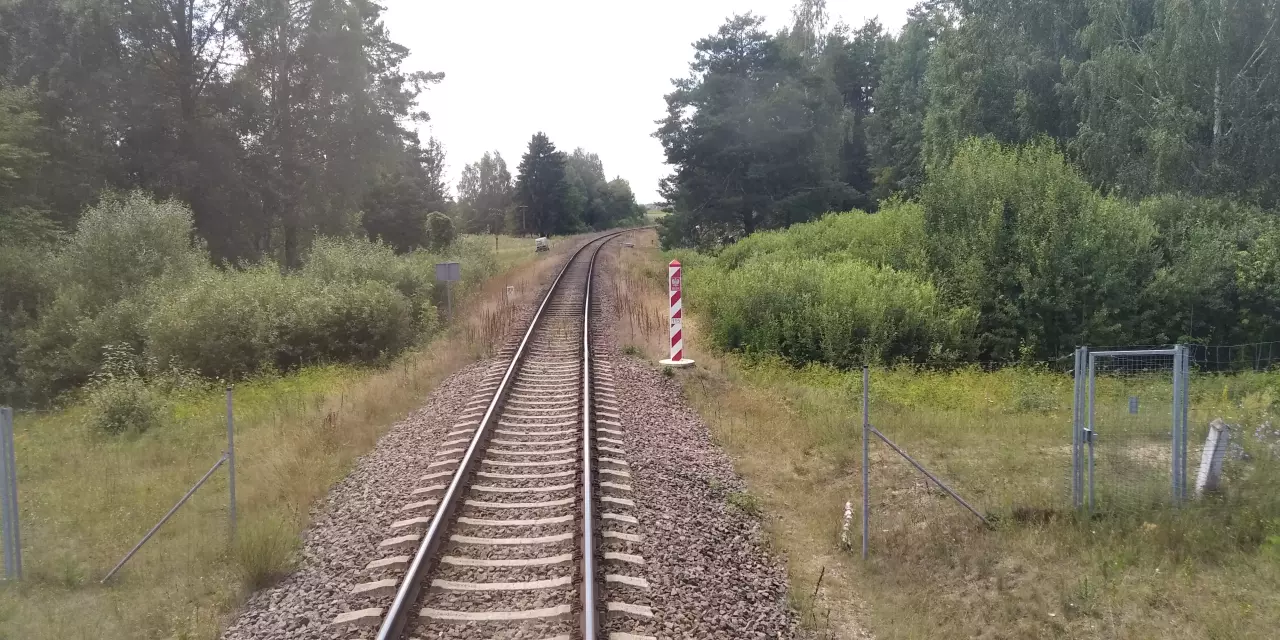 Jeden wspólny słup graniczny. Litewskie ogrodzenie linii kolejowej. Polski kilometraż punktu: 28,620. Litewski kilometraż punktu: 78,840. |