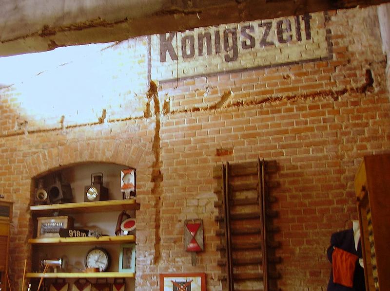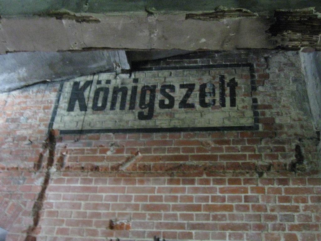 Niemiecka nazwa stacji zachowana na ścianie w muzeum.