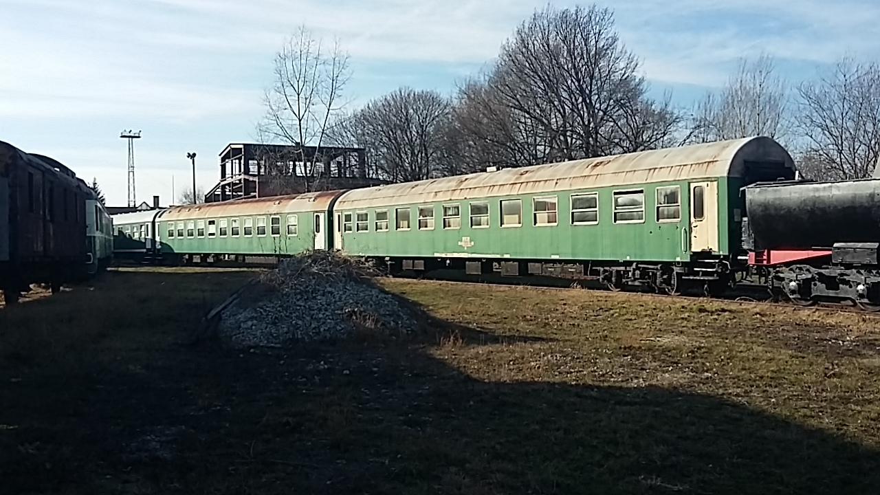 Stare wagony sypialne na bocznicy, na terenie parowozowni.