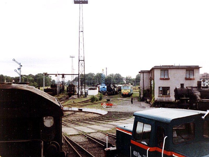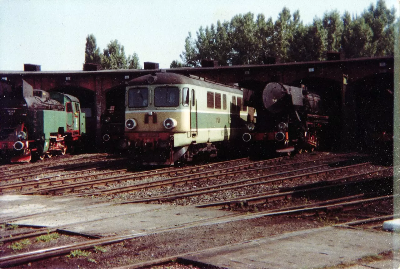 Lipiec 1992 roku - czyli schyłek normalnej eksploatacji lokomotywowni. PKP rozpoczęły już gromadzenie zabytkowego taboru, ale w szopie można było jeszcze wówczas spotkać SM42, SP32, ST43 i SU46. Skan zdjęcia z analogowego Kodaka.