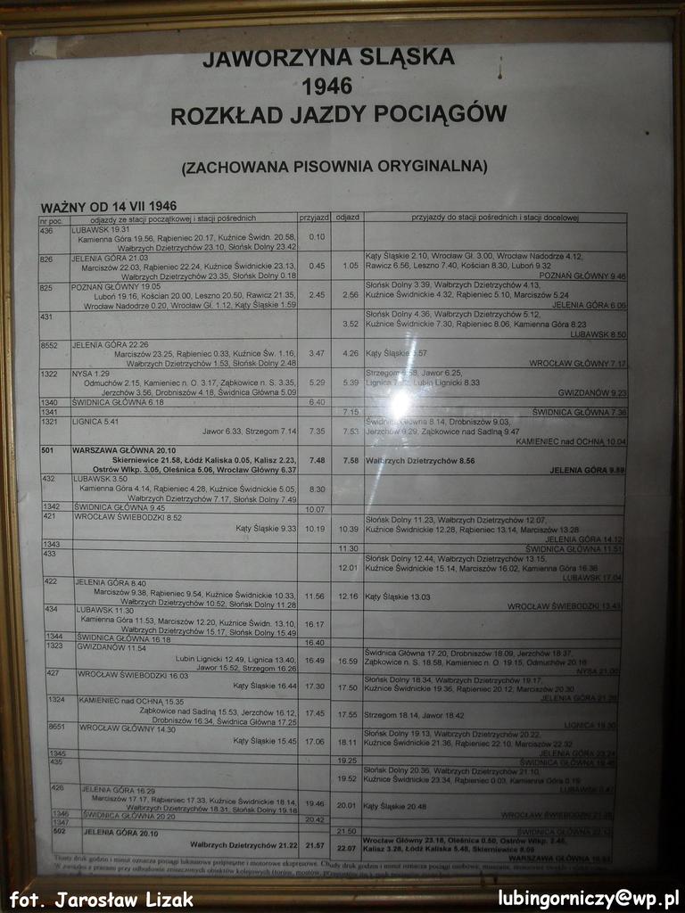 Rozkład jazdy z 1946 roku stacji Jaworzyna Śląska.