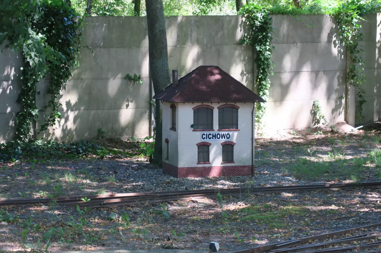 Istnienie Kolejki parkowej Cichowo należy podzielić na dwie edycje: pierwszą w latach 2005-2011 i drugą po roku 2012. W pierwszej edycji Dworzec Główny i większość obiektów obsługowych znajdowała się na terenie dawnego folwarku pałacowego. Dworzec główny był pod dużą drewnianą wiatą; do obsługi taboru służyły: szopa, warsztat, obrotnica, wieża wodna, węglarka, był też most kratownicowy. Pociągi wyjeżdżały przez bramę folwarku i mijając drogę dojazdową do pałacu wjeżdżały na teren parku pałacowego. Ruch odbywała się na dwóch rozstawach szyn: 241mm i 127mm. Rozstaw 241mm obsługiwały: parowóz Atlantic i lokomotywa spalinowa. Rozstaw 127mm obsługiwała lokomotywa spalinowa. Po burzliwych zmianach przekształceniu uległa też trasa kolejki. Baza obsługowa na terenie folwarku została zamknięta, a miejsce startu przeniesione zostało obok parkingu przy Soplicowie. Jednocześnie na terenie parku, przy trasie przejazdu, wybudowano dworzec Cichowo, czterostanowiskową lokomotywownię wachlarzową z obrotnicą, most kratownicowy, tunel, wagonownię. (info. Przemysław Warczyński. 2024-0707) |