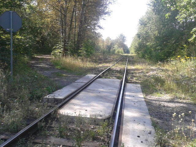 | Warsztaty Naprawcze Taboru Kolejowego w Smolnicy zajmowały się głównie naprawą wagonów. Na teren zakładów prowadziła bocznica szlakowa, której rozjazd znajdował się w kilometrze 15.8. Po hali warsztatowej nie zostało nic - w jej miejscu rosną drzewa, a wśród nich stoją ławki. (info: krzysiuup, 02.09.2017) |