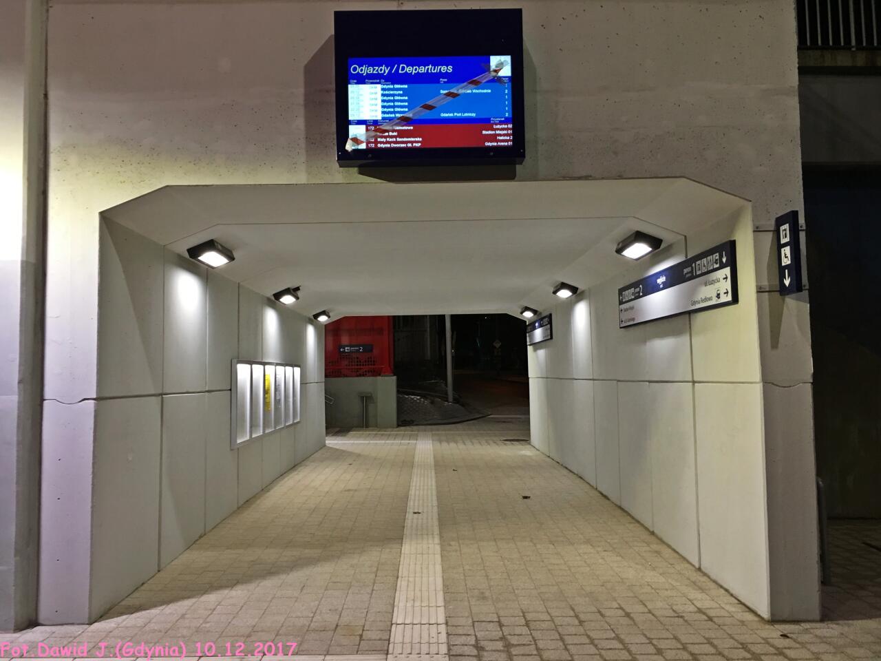 Przejście pod torami. W lewo Gdańsk Osowa/Bydgoszcz Główna, w prawo Gdynia Główna.