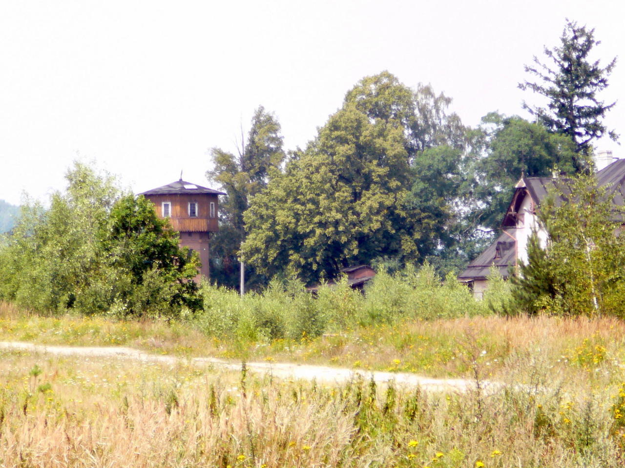 Nowa Wieś Grodziska. Wieża wodna jeszcze jest.