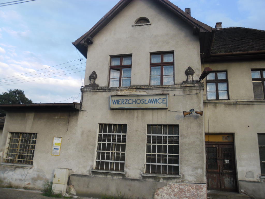 Niestety budynek dworca w Wierchosławicach nie jest w najlepszym stanie. Widok od strony peronu i wjazdu z Torunia.