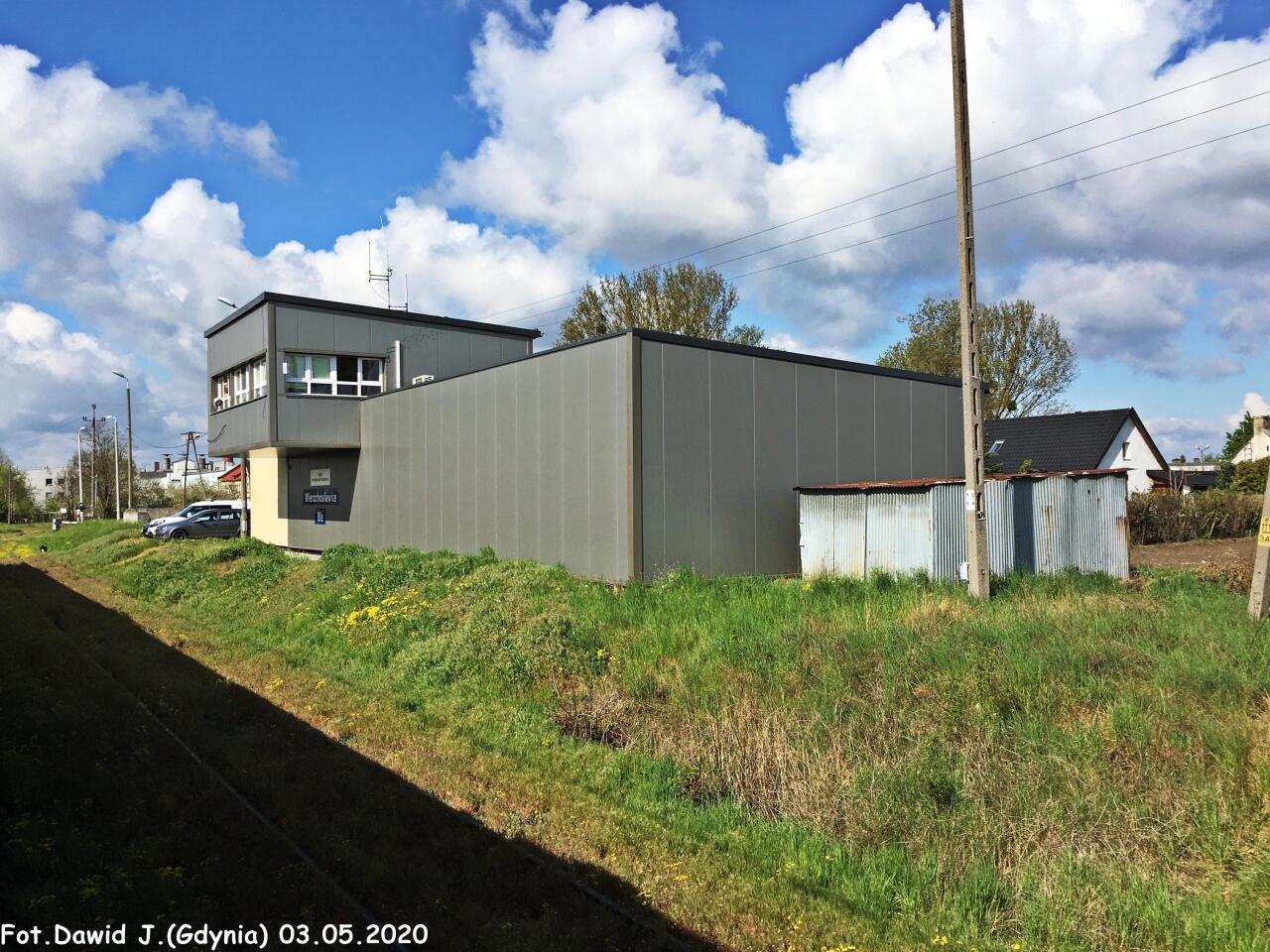 Budynek nastawni "We" widoczny od strony torów. Widok w kierunku Inowrocławia.
