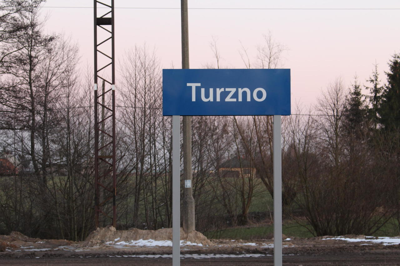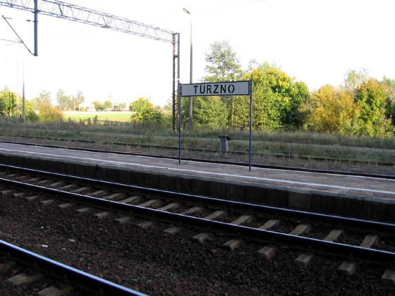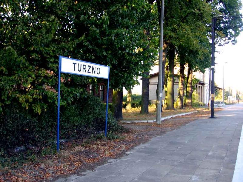 Turzno Dworzec PKP. Widok od strony placu rozładunkowego i wjazdu z Torunia.
