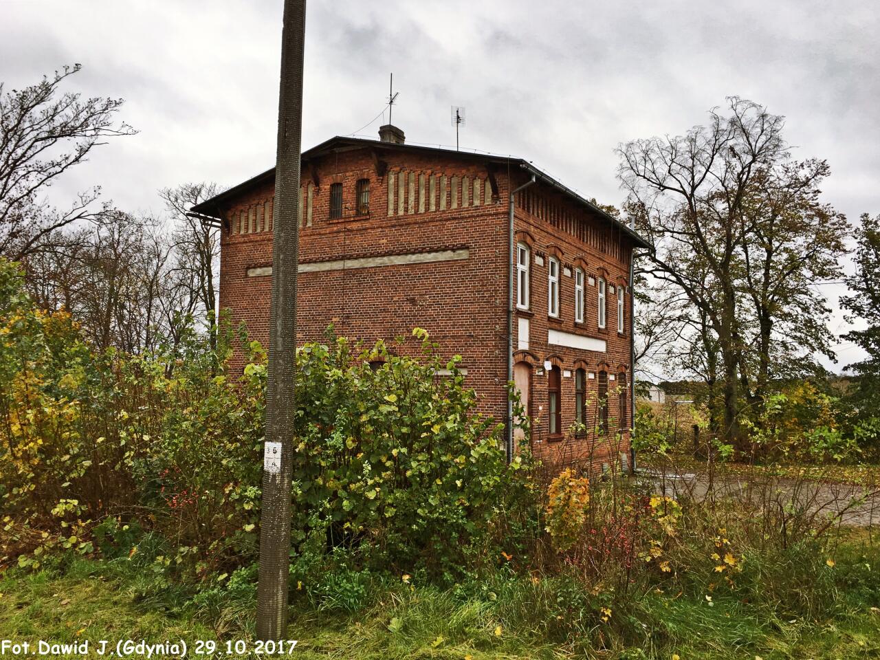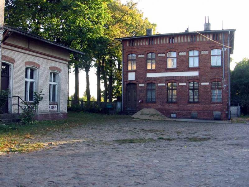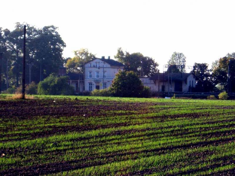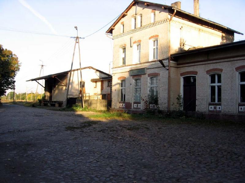 Zabudowania stacji od wschodu, od strony wjazdu z Kowalewa Pomorskiego.