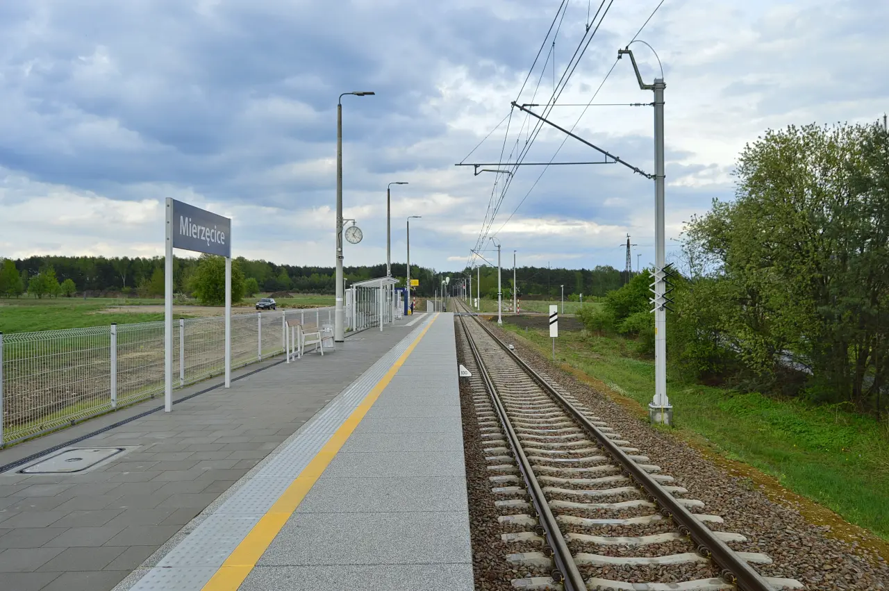 Nowy przystanek na linii 182, zaprojektowany i zbudowany przy okazji rewitalizacji. W poprzedniej wersji w tym miejscu był tylko przejazd kolejowy i pole. Śmiem wątpić, czy będą tu tłumy wsiadały i wysiadały; trochę tu daleko zewsząd. W marcu 2021 w tym miejscu jest tylko kawałek placu na którym ułożono drewno, pewnie pozbierane w trakcie oczyszczania linii. Do końca lata 2022 na wschód od ulicy Wspólnej powstał peron przystanku. (zobaczył Wojciech Gross, 2022-10-31). |