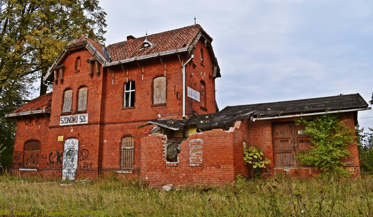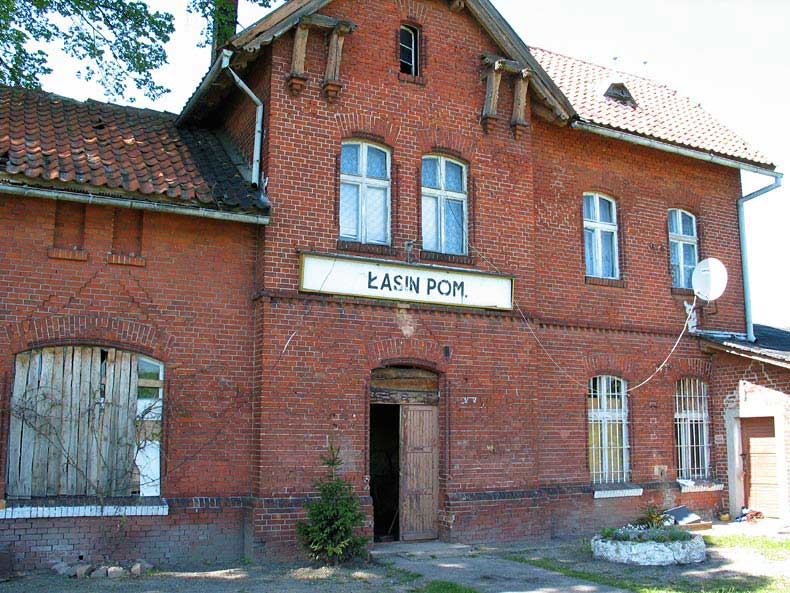 Dawny budynek dworcowy widoczny od strony miejsca, gdzie kiedyś były tory. W lewo Jabłonowo Pomorskie, w prawo Kisielice/Prabuty.