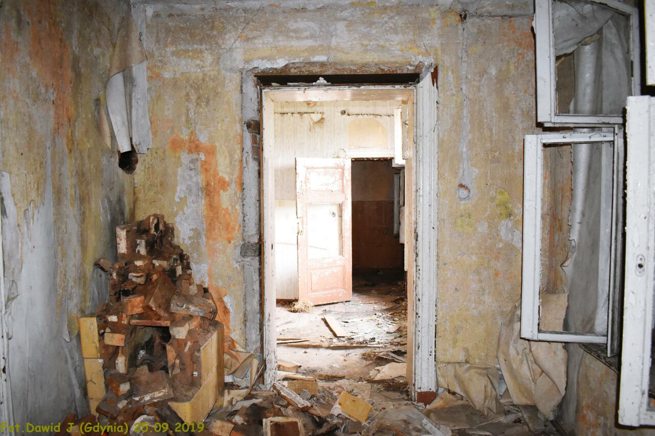 Wnętrze dawnego budynku dworcowego. Piętro 1. Opuszczone mieszkanie.