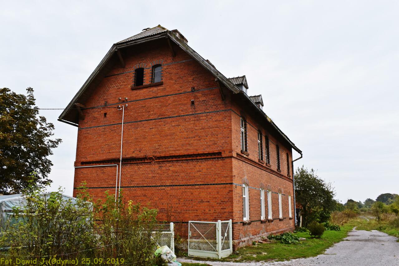 Kolejowy budynek mieszkalny nr 1 z przyległą częścią z pomieszczeniami gospodarczymi widoczny od strony miejsca gdzie kiedyś były tory. W lewo Jabłonowo Pomorskie, w prawo Kisielice/Prabuty.