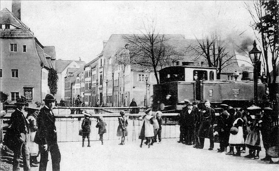 Ein Triebwagenzug mit drei ET 89 und 12 Beiwagen trifft in Lauban ein -