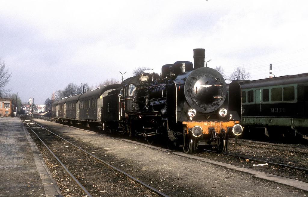 Pociąg specjalny z Ty2 na czele w Lubaniu Śląskim stoi zwrócony czołem w kierunku wyjazdów na Leśną i Gryfów Śląski, na grupie torów po wschodniej stronie dworca. Na pierwszym planie peron 2. Za składem tereny ZNTK Lubań Śląski, wtedy jeszcze prężnie działający zakład z branży kolejowej. Widoczne także poniemieckie bramki trakcyjne - pamiątka po przedwojennej elektryfikacji zrabowanej przez wojska sowieckie po zakończeniu II wojny światowej.