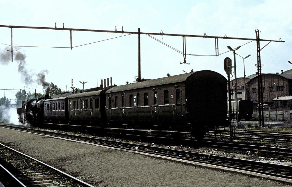W sumie jako wagony doczepne służyło 35 dwuosiowych wagonów standardowej konstrukcji z lat 1923-25 z elektrycznym ogrzewaniem i oświetleniem oraz przewodami wielokrotnego sterowania oraz 7 wagonów bagażowych wersji skróconej. Od 1934 r. DRG zakupiła także 8 czteroosiowych wagonów sterujących (rozrządowych), które od 1940 r. nosiły nazwę ES 89 01-08. Zachodnia strona dworca kolejowego, niewidocznego w kadrze. Znajduje się on za sterczącą nad pierwszym wagonem, nastawnią wykonawczą Lb1. Widok w kierunku południowym, od strony wjazdu z Węglińca.