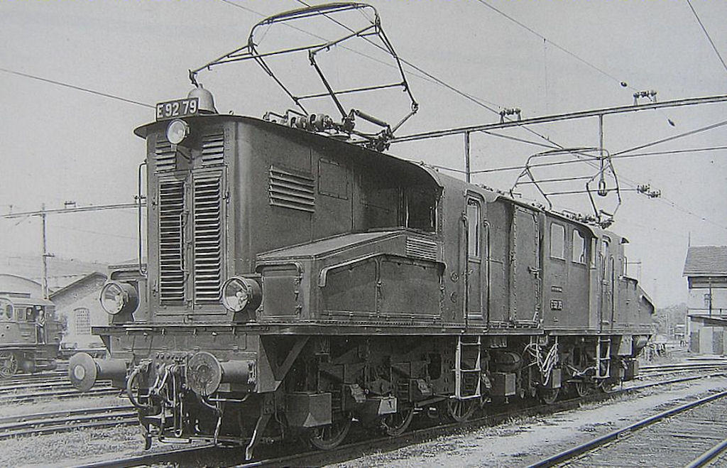 Lokomotywa E92-79 na stacji Lubań Śląski. Widok od strony wjazdów z Leśnej i Gryfowa Śląskiego w kierunku północno-zachodnim; w tle, po lewej budynki ZNTK.
