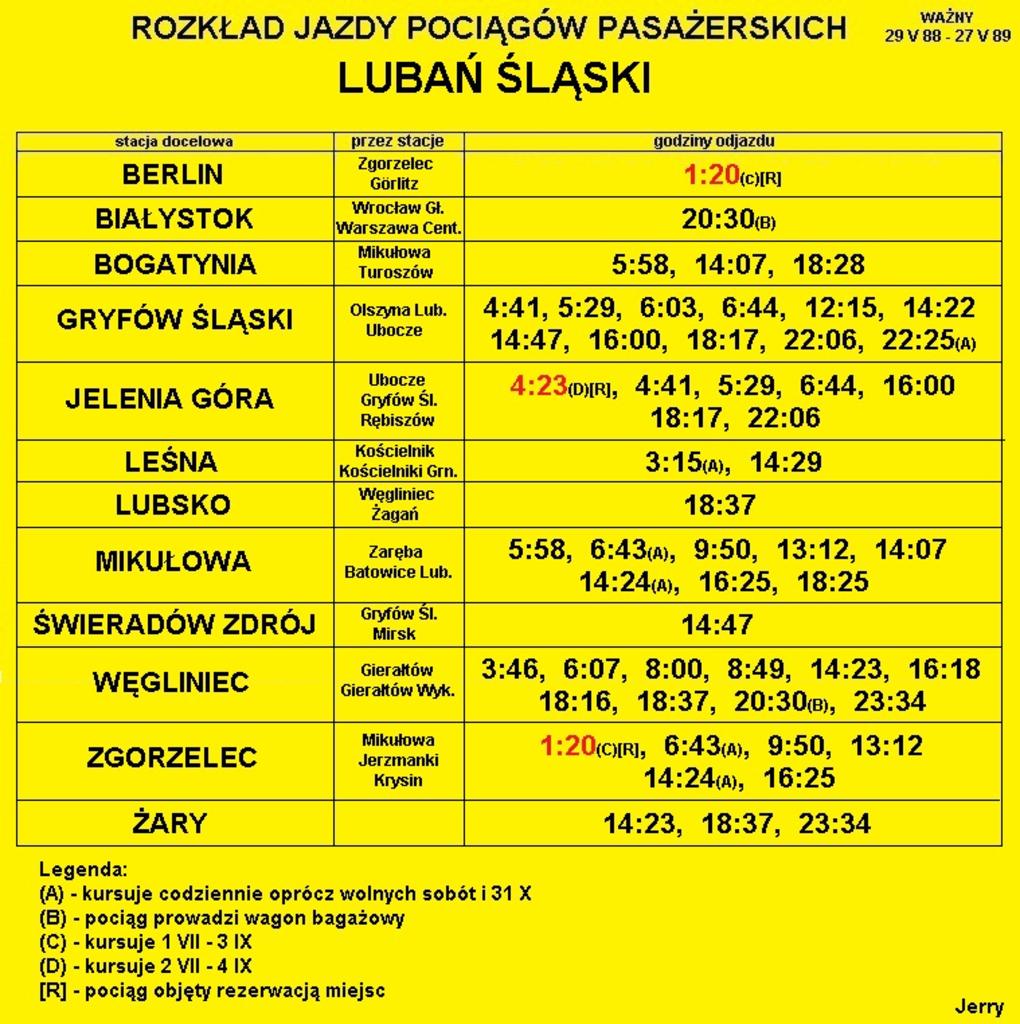 Rozkład jazdy pociągów ważny w okresie 29 V 1988 - 27 V 1989.