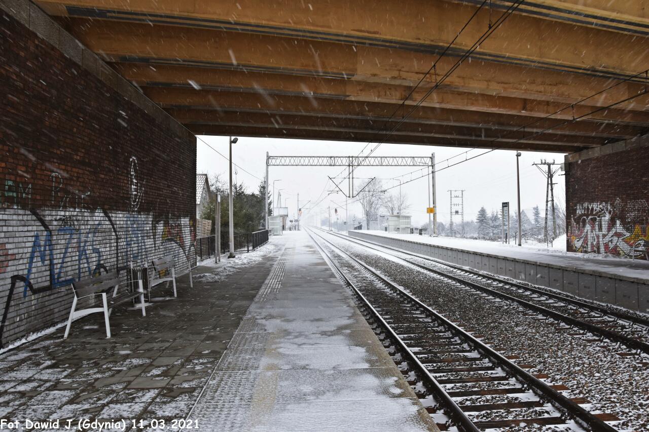 Widok z peronu 1 w kierunku Tczewa. Pod wiaduktem.