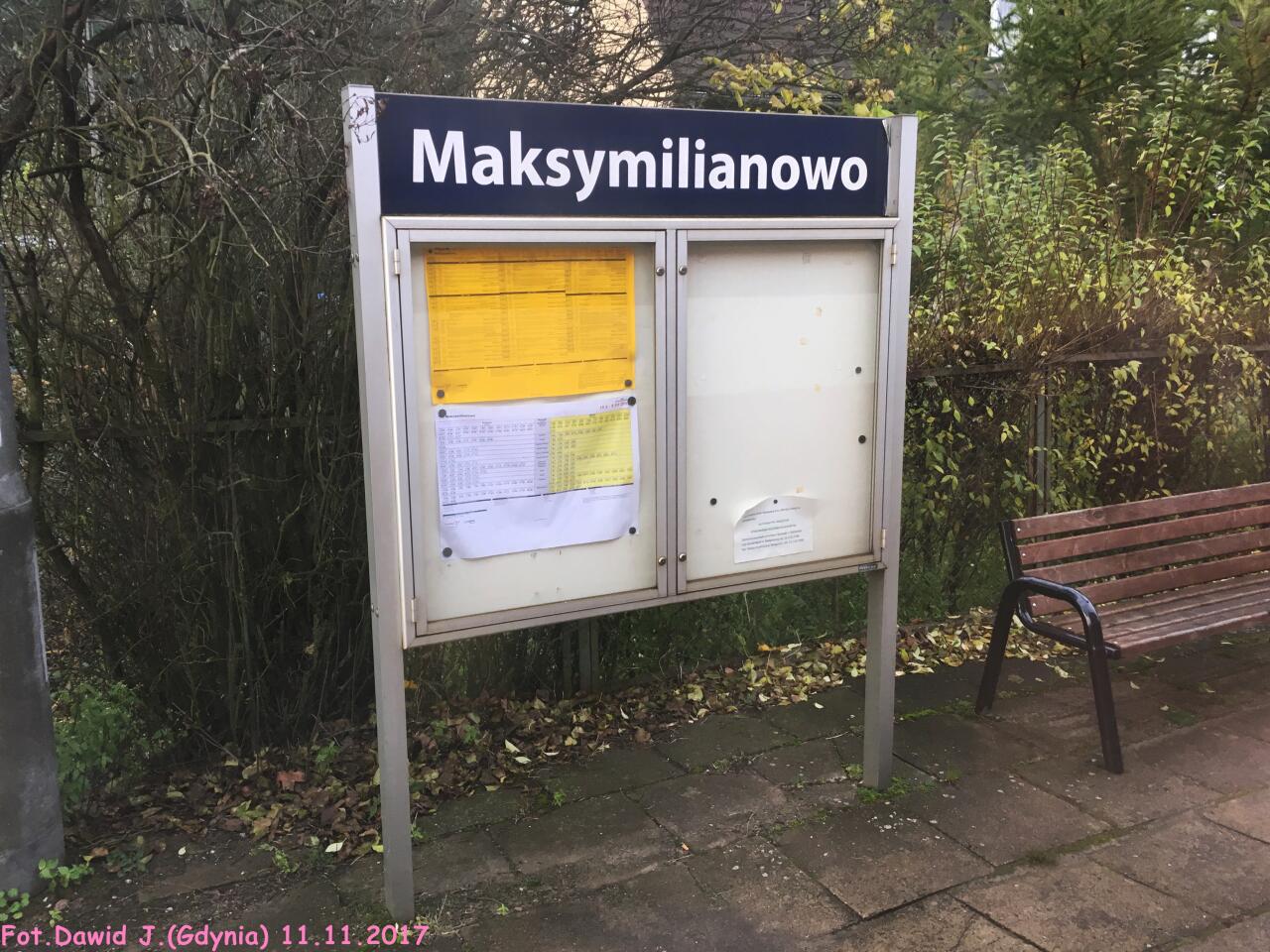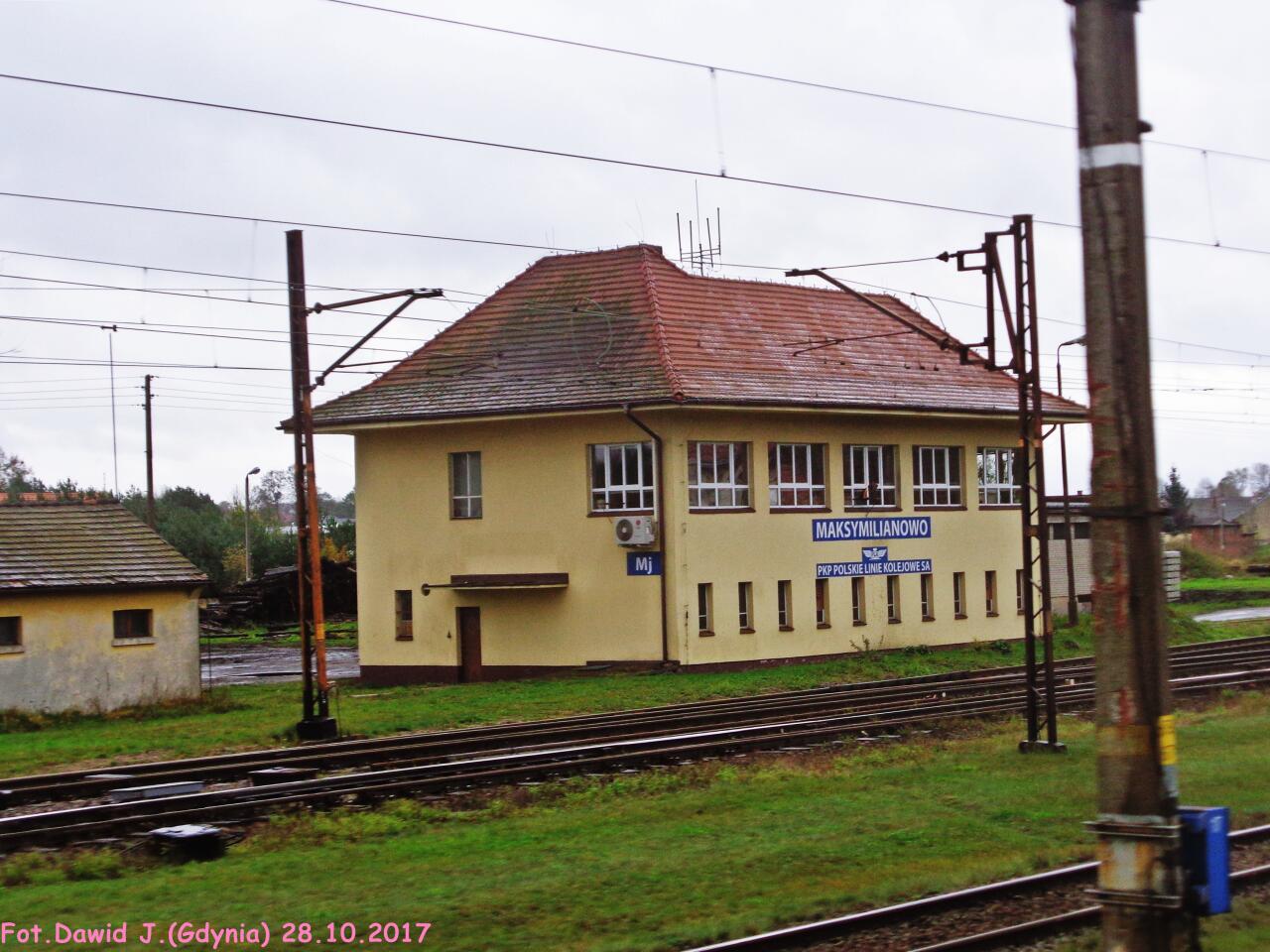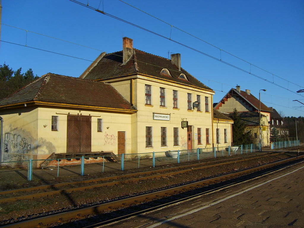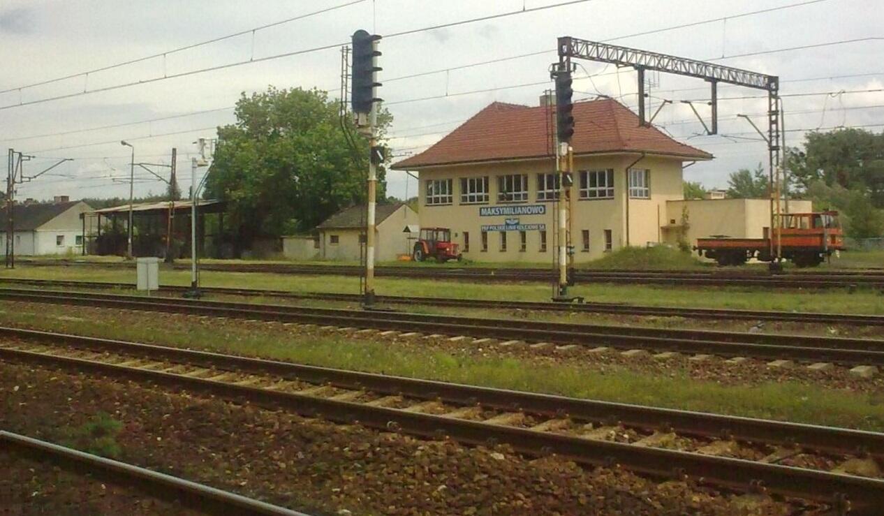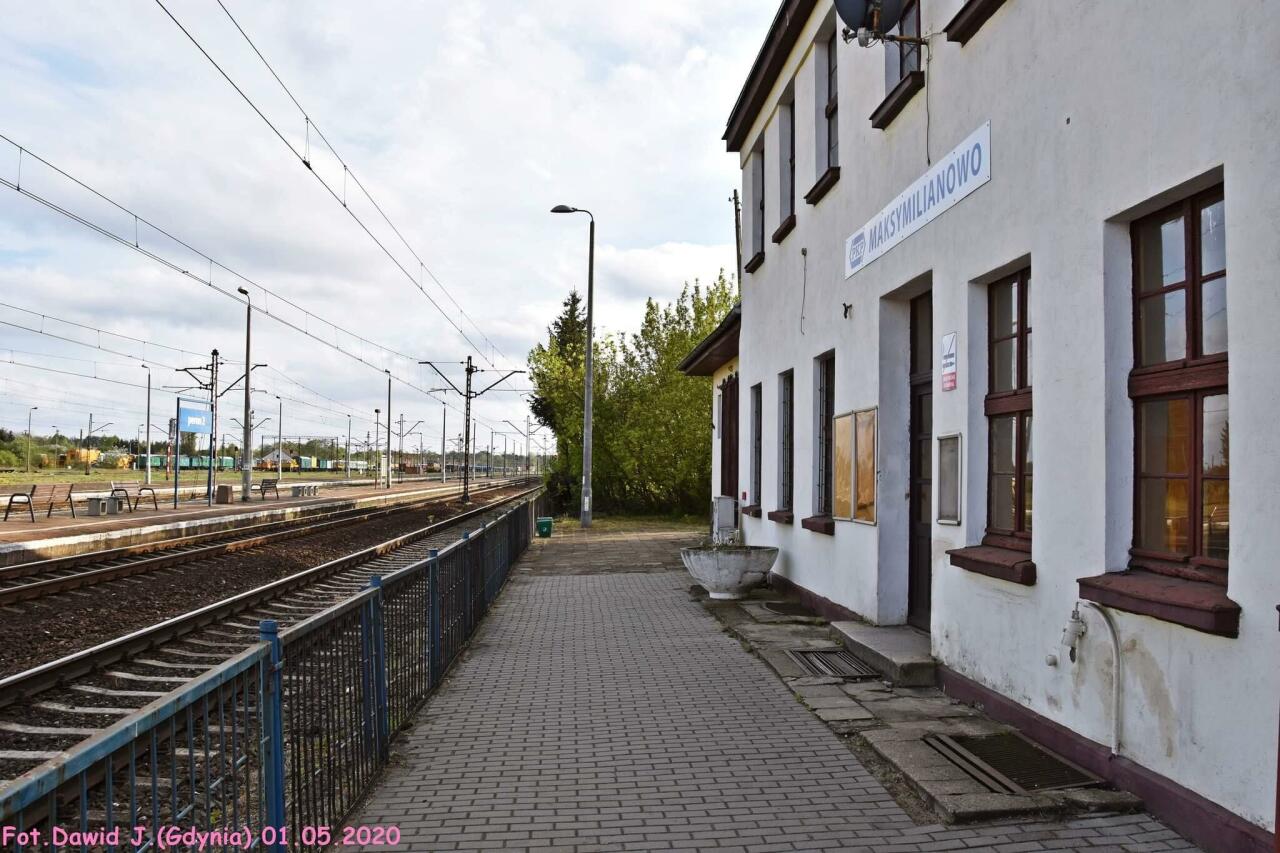Schemat części stacji Maksymilianowo. Stan na dzień 1 stycznia 1931r. Warto zwrócić uwagę na zaznaczoną linią wąskotorową z wyjazdem w kierunku Smukały. Do dzisiaj (05 listopada 2021) da się przejechać bezpiecznie samochodem osobowym starotorzem kolei wąskotorowej od Maksymilianowa do samej Smukały. Lasem jedzie się po wysokim dawnym nasypie. Źródło - Archiwum Państwowe w Gdańsku.