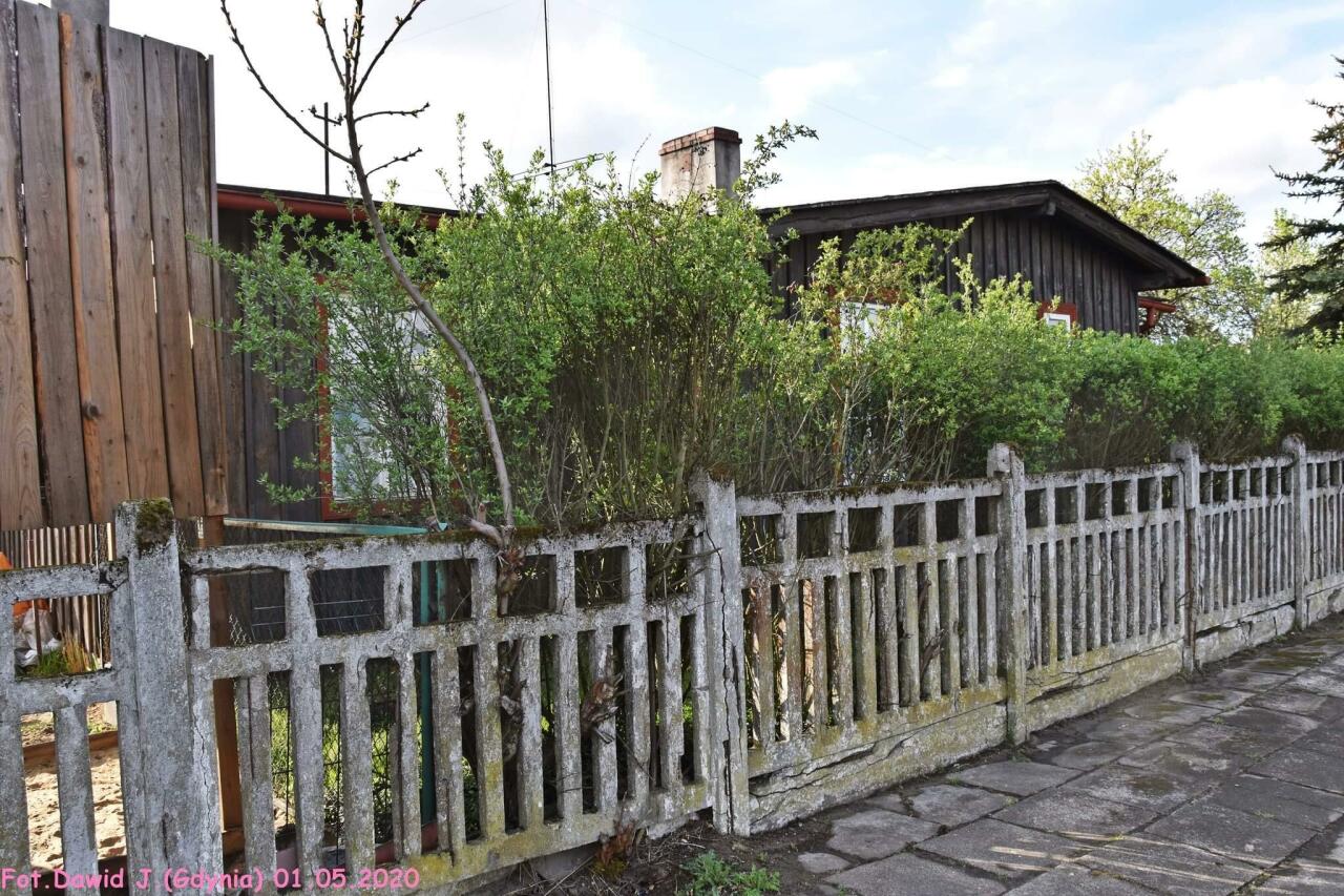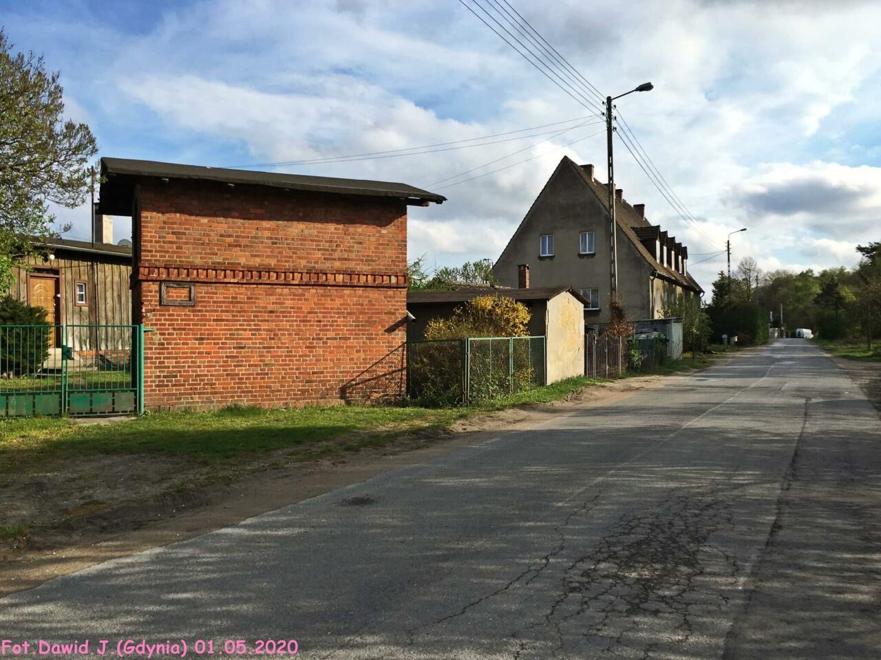 Kolejowy budynek mieszkalny (ul. Dworcowa 11) i budynek nastawni "Mj". Obiekty widoczne od strony podjazdu. Widok w kierunku Laskowic Pomorskich i Wierzchucina/Gdyni Głównej.
