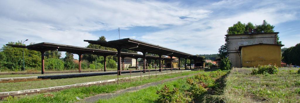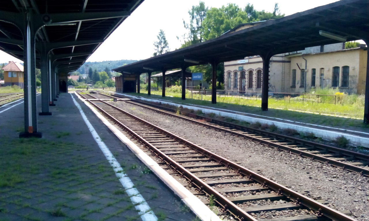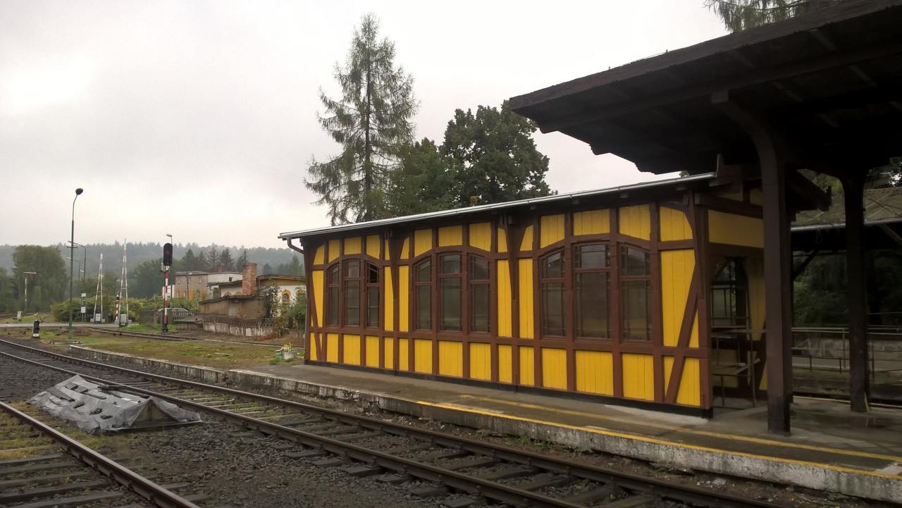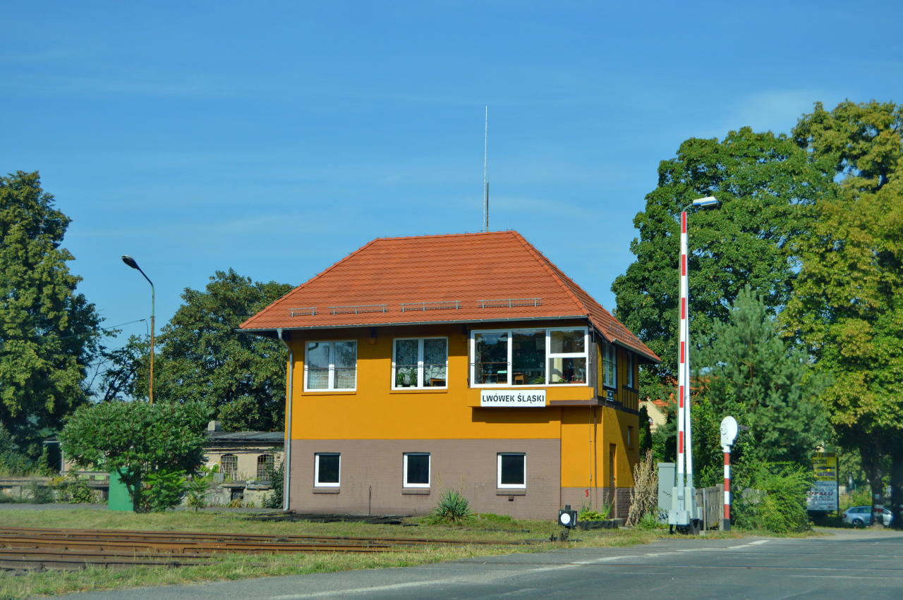 Stacja kolejowa w Lwówku Śląskim widziana z drona.