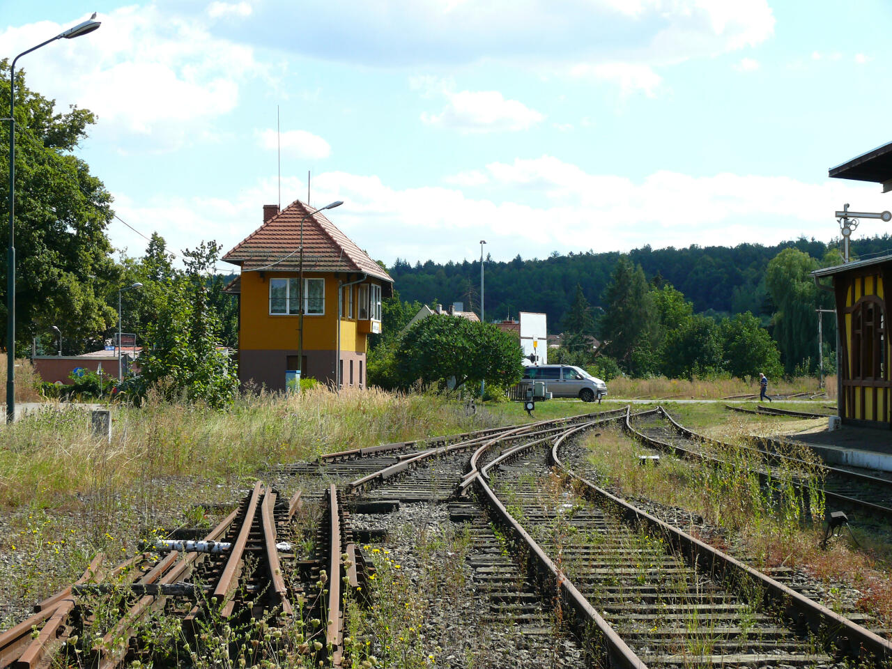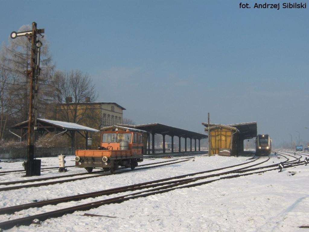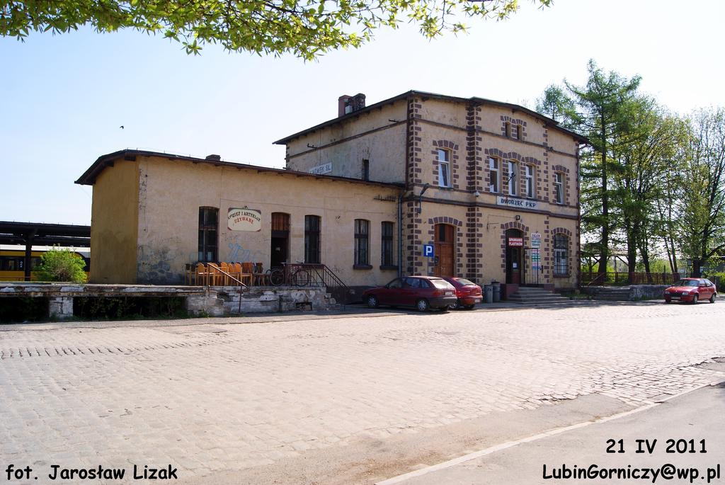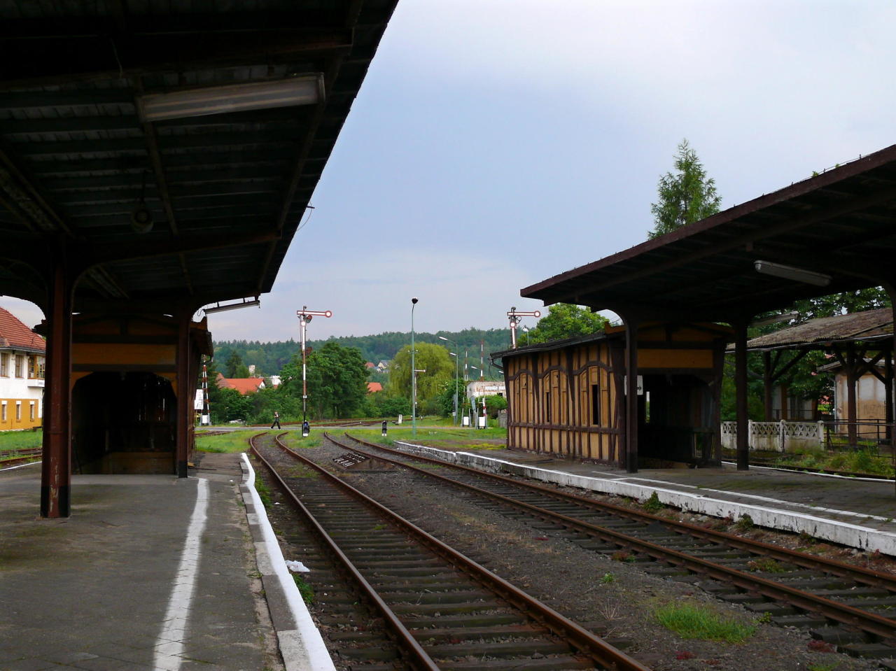 Stacja kolejowa w Lwówku Śląskim widziana z drona.
