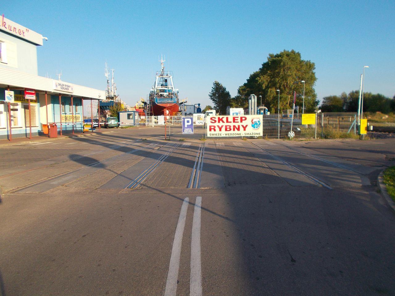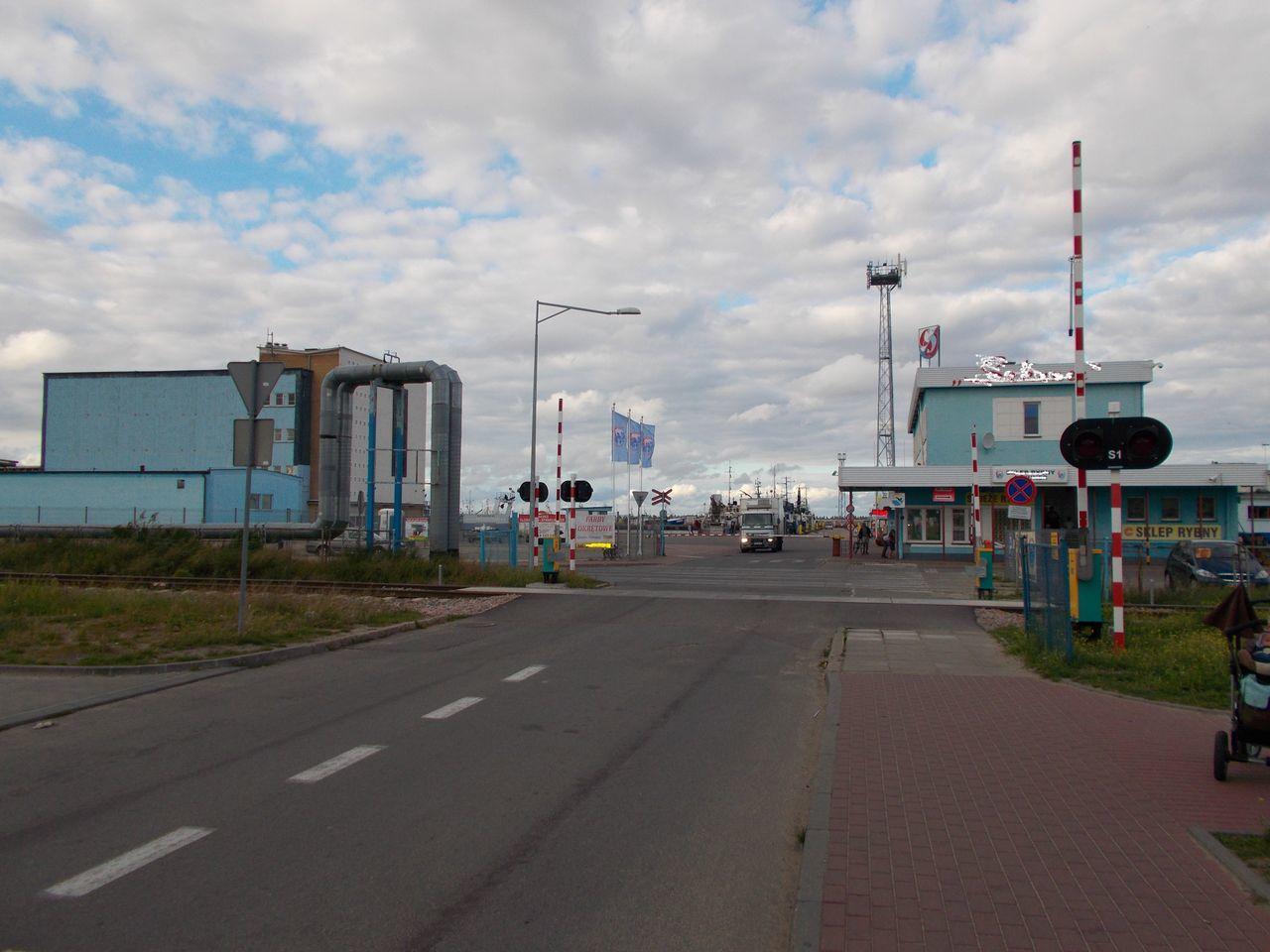 Przejazd na ul. Portowej. Na lewo Reda, na prawo Hel.