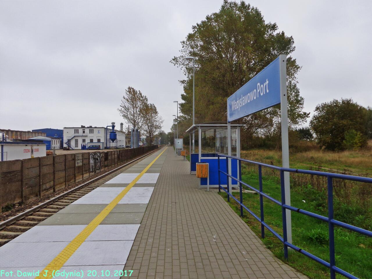 Widok na peron w kierunku południowo-wschodnim; w lewo Hel, w prawo stacja Władysławowo.